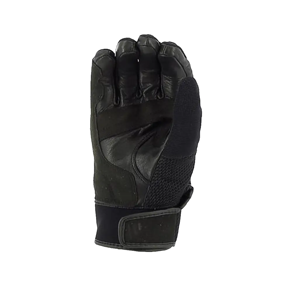• Construcción de spandex flexible y elástico con paneles de neopreno • Malla de aire de alta densidad en la parte superior de la mano• Ventilación sin corrientes de aire • Cierre de muñeca con velcro • Protección de nudillos y dedos integrada con certificación CE • Acolchado Temperfoam® • Protector duro de nudillos • Palma de cuero para mayor agarre. Composición de materiales: 48% Cuero Genuino y 52% Poliéster, FORRO 100% Poliéster. Protector de TPU. Color 100 Negro.